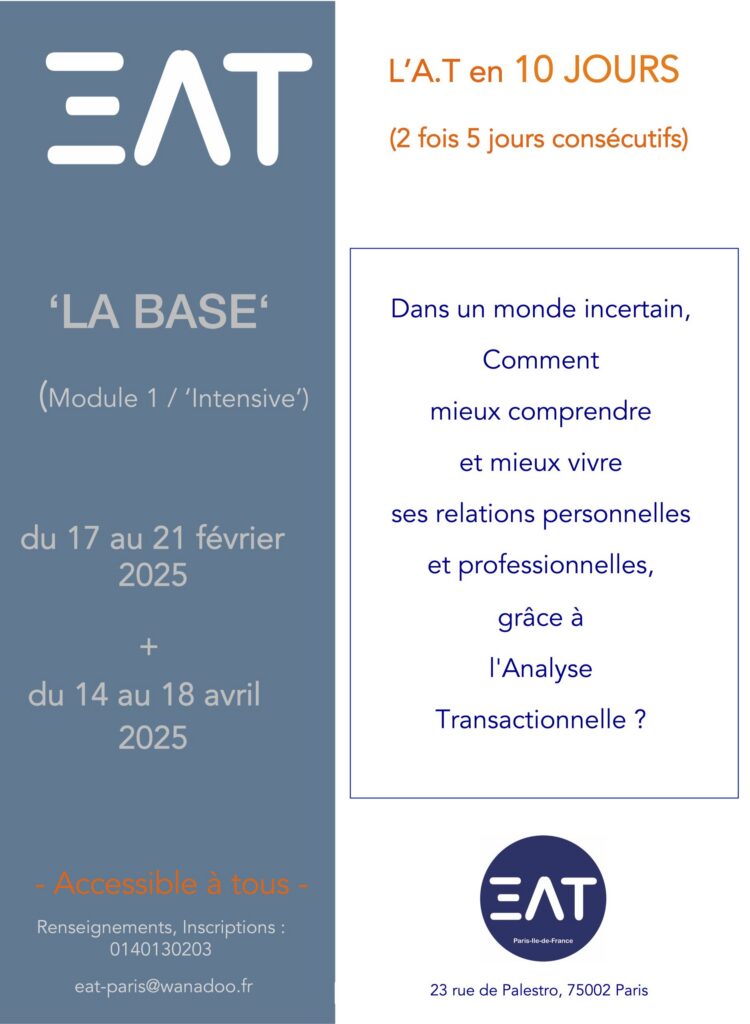 Formation Bas-Intensive en Analyse Transactionnelle : Mieux comprendre et mieux vivre ses relations